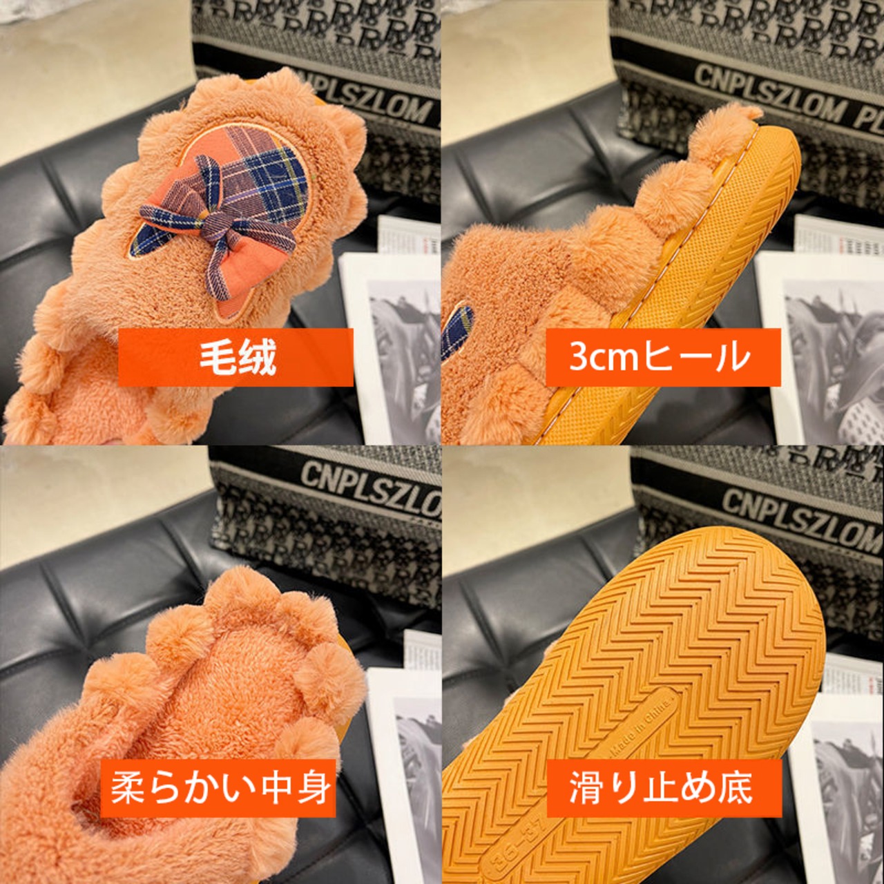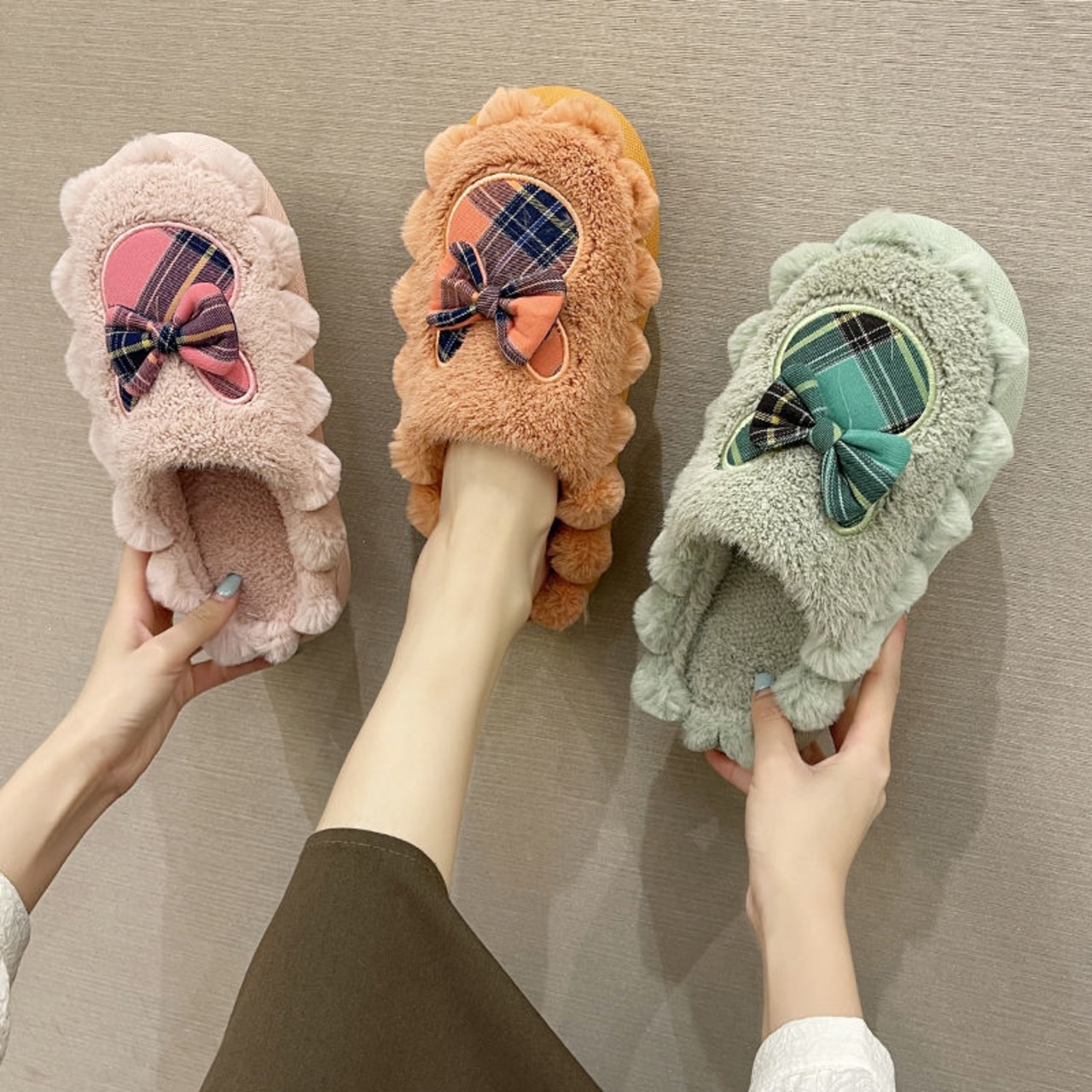 冬 蝶結び 室内スリッパ 防寒