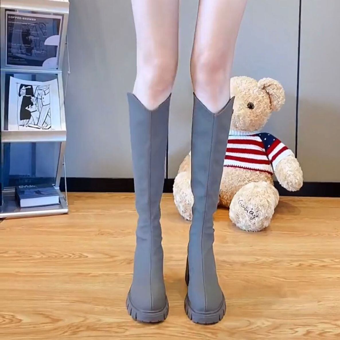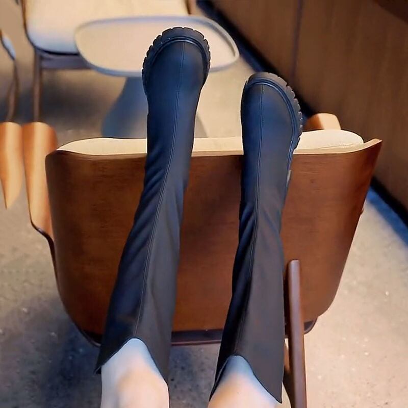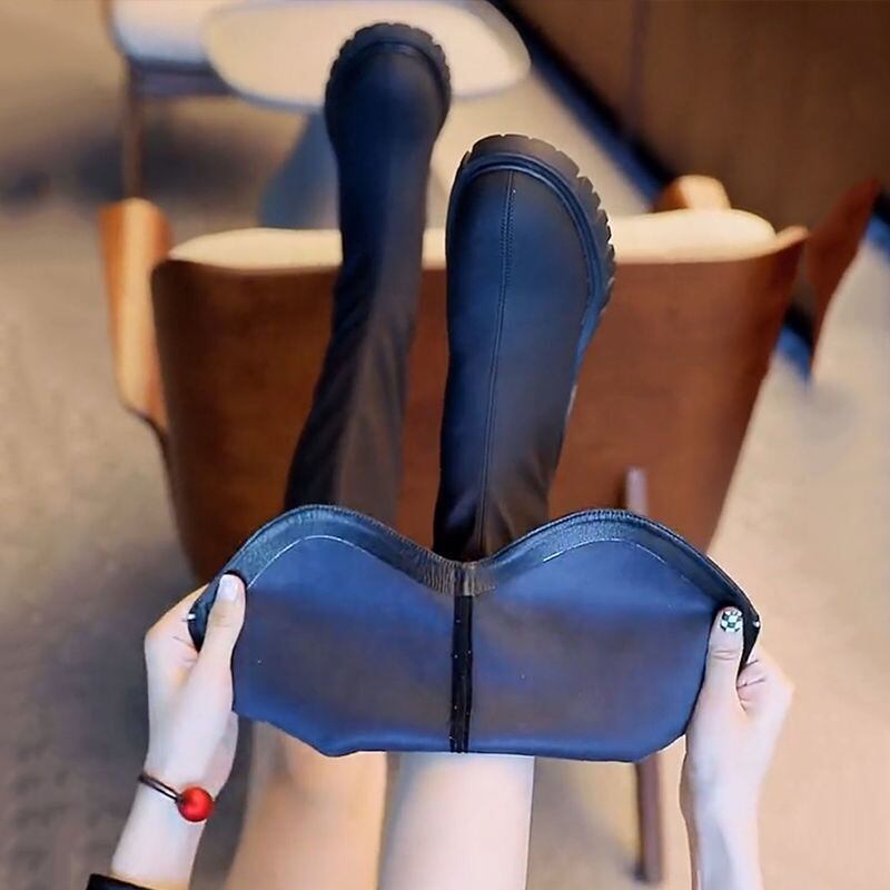 ロングブーツ レディース ハイブーツ 太ヒール ブーツ 長靴 女性用 シューズ 美脚 裹起毛