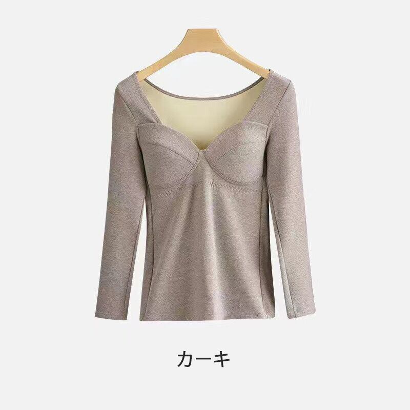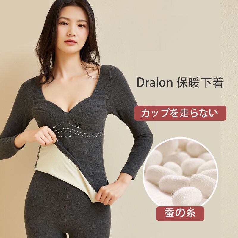 インナーウエア 長袖 冬 保温下着 肌着 Vネック 伸縮性