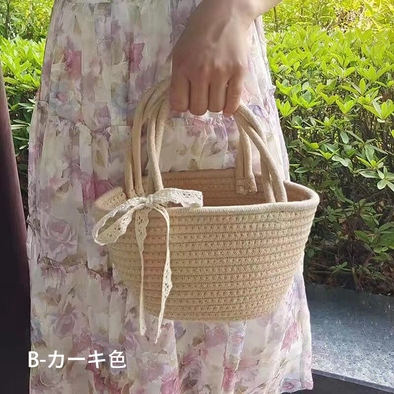 草編みバッグ  手持ち 可愛い おしゃれ 買い物 お花見