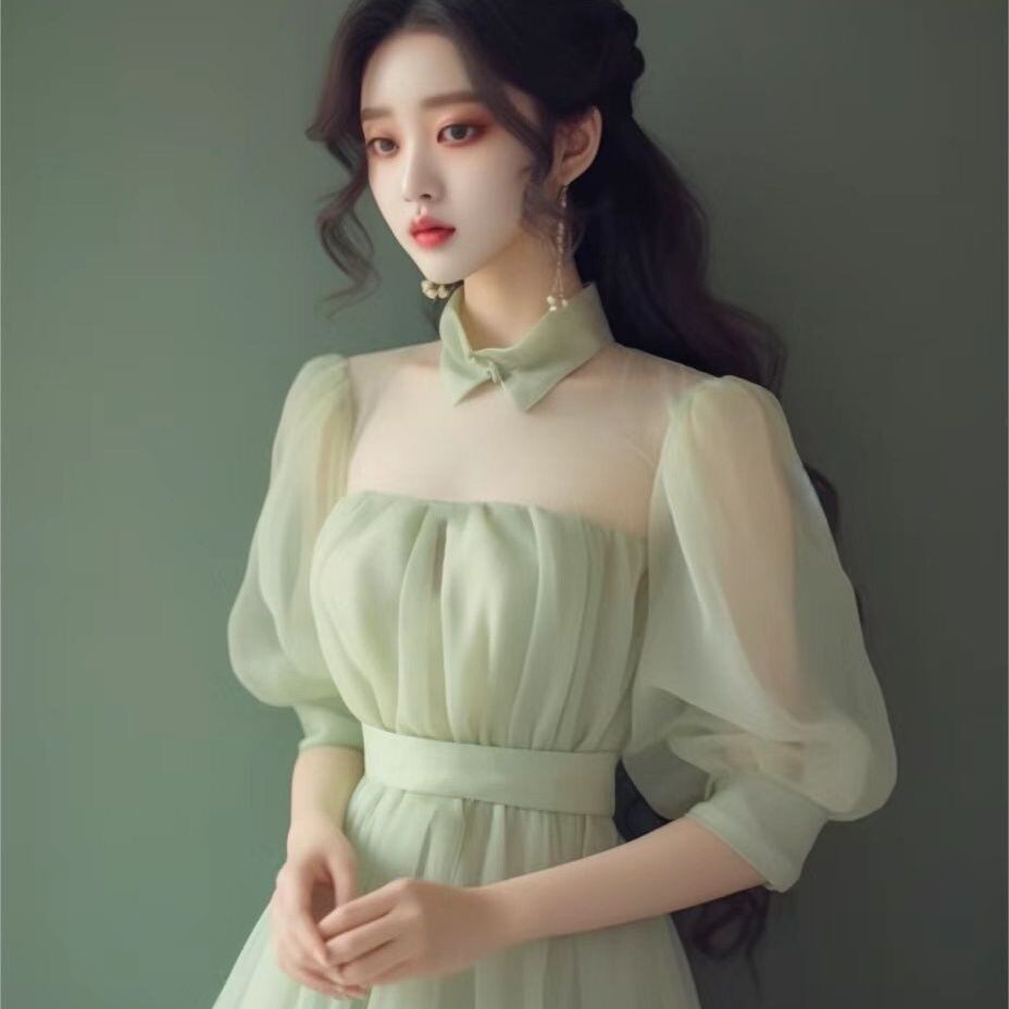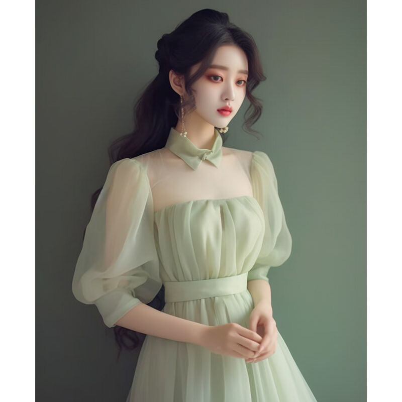 チュールドレスは、透け感が魅力的なシアーシースルー仕様で、五分袖のぽわん袖が可愛らしいデザインです。パーティや結婚式、二次会などの特別な場面で活躍する一着です。さりげない透け感が女性らしさを引き立て、周囲の視線を集めること間違いなし!